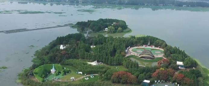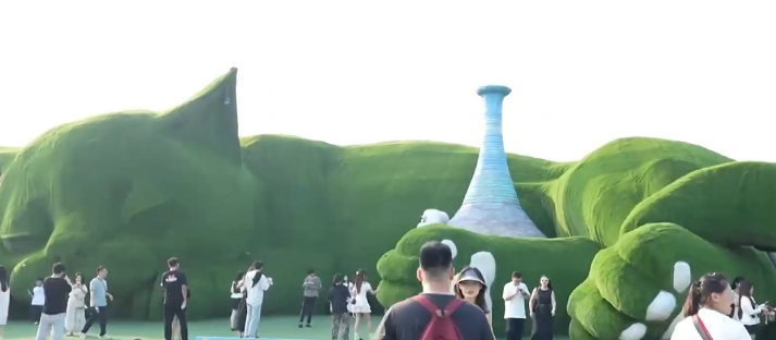 Остров украшен 30-метровой топиарной скульптурой кота, мирно свернувшегося в клубок.