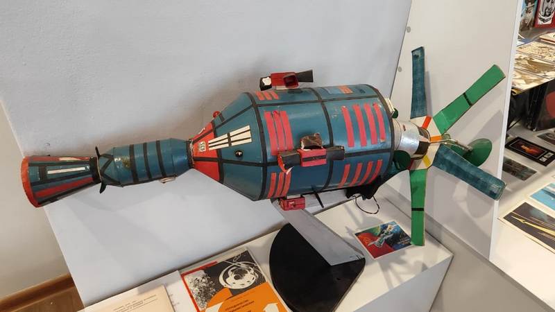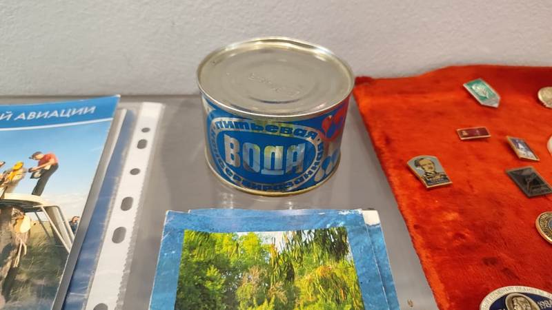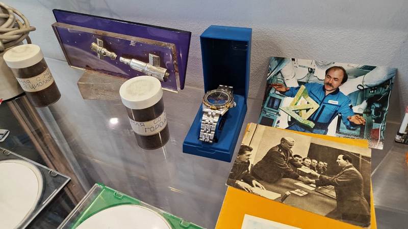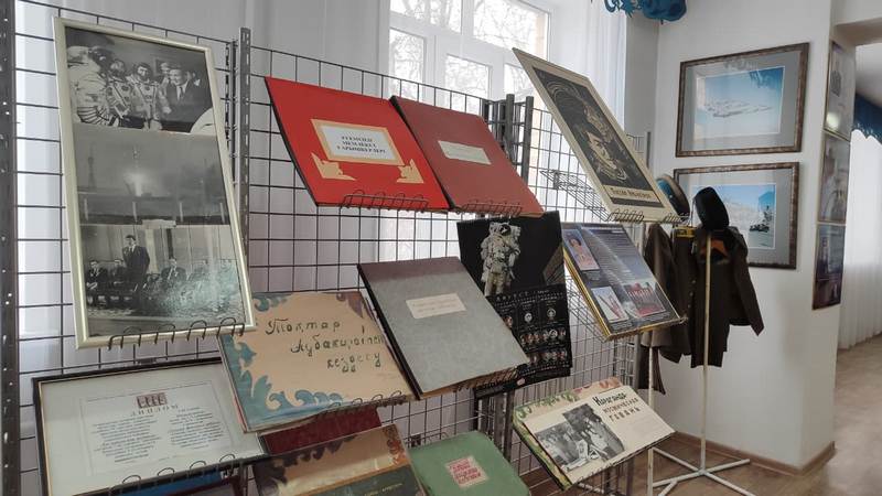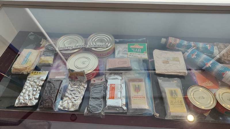 водный костюм Айдына Аимбетова, выпуск «Комсомольской правды» от 13 апреля 1961 года с сообщением о полёте Гагарина, космическое питание, редкие марки и альбомы. Многие экспонаты подарили сами космонавты: музей посетило более 25 покорителей космоса — от Валентины Терешковой до Сергея Крикалёва.