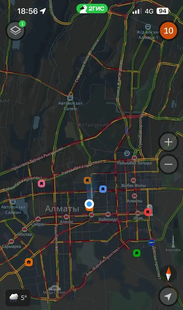 Около 19:00 в Алматы из-за непогоды образовались пробки в 10 баллов.